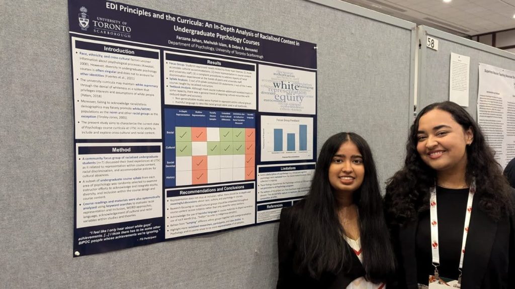 Jahan, F., Islam, M., & Bercovici, D. A. EDI Principles and the Curricula: An In-Depth Analysis of Racialized Content in Undergraduate Psychology Courses (2024). Canadian Psychological Association, Ottawa, ON, Canada, Poster Presentation.